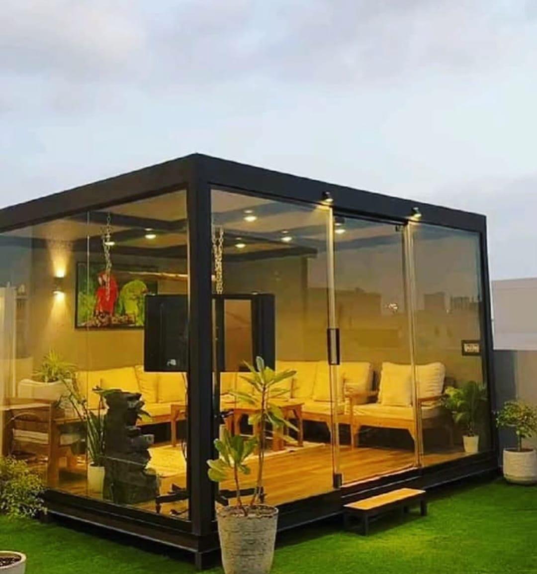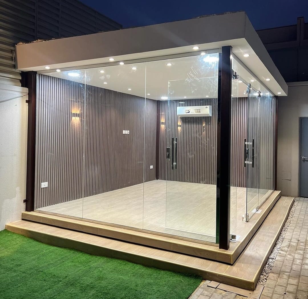 "نصمم الغرف الزجاجية بطريقة تناسب احتياجكم، سواء كانت جلسات خارجية، مكاتب منزلية، أو مساحات استرخاء بإطلالة مميزة. نستخدم أجود أنواع الزجاج المعزول اللي يوفر لكم الراحة ويحافظ على درجة الحرارة داخل الغرفة، مع تصاميم عصرية تضيف لمسة فاخرة لبيوتكم أو مشاريعكم."