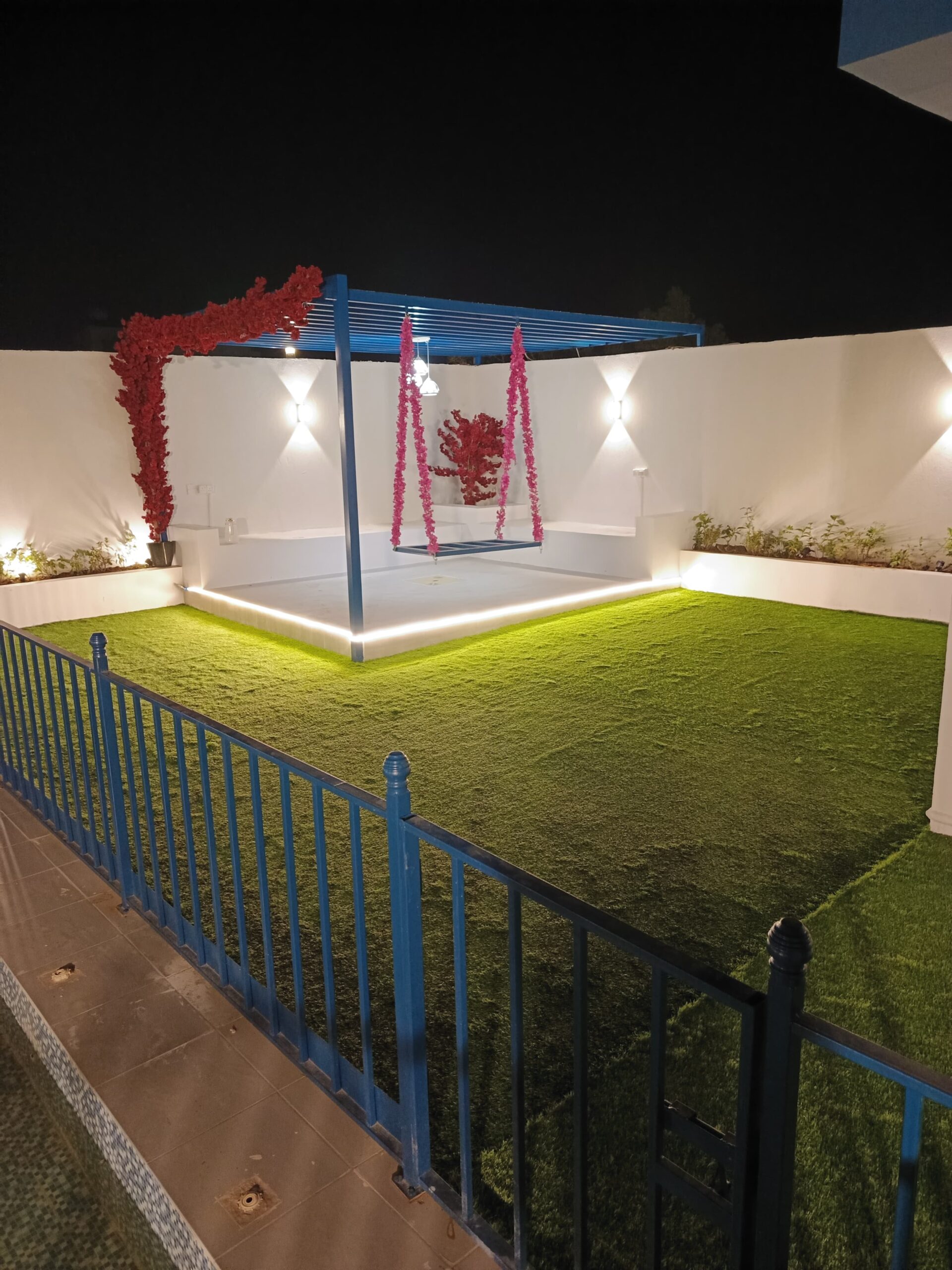 نحن خبراء في تنسيق الحدائق وتصميم المساحات الخارجية. بخبرة تمتد لأكثر من 15 سنة، نقدم لكم حلول مبتكرة تناسب كل احتياجاتكم، من تركيب العشب الطبيعي والصناعي إلى تصميم الشلالات والجلسات الخارجية. هدفنا تحويل كل مساحة إلى واحة خضراء جميلة وعملية."