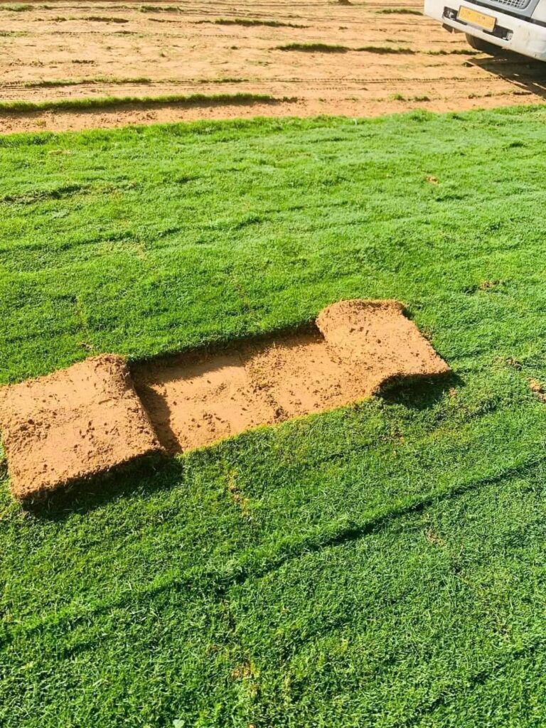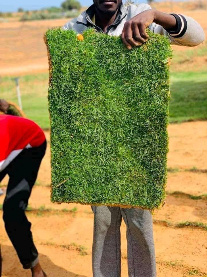 - تركيب لفائف العشب: يتم وضع لفائف العشب الطبيعي بشكل متسق على الأرض وتثبيتها جيدًا باستخدام دبابيس أو أدوات تثبيت أخرى، مع مراعاة ترك فراغات صغيرة بين اللفائف لضمان نمو العشب بشكل جيد.